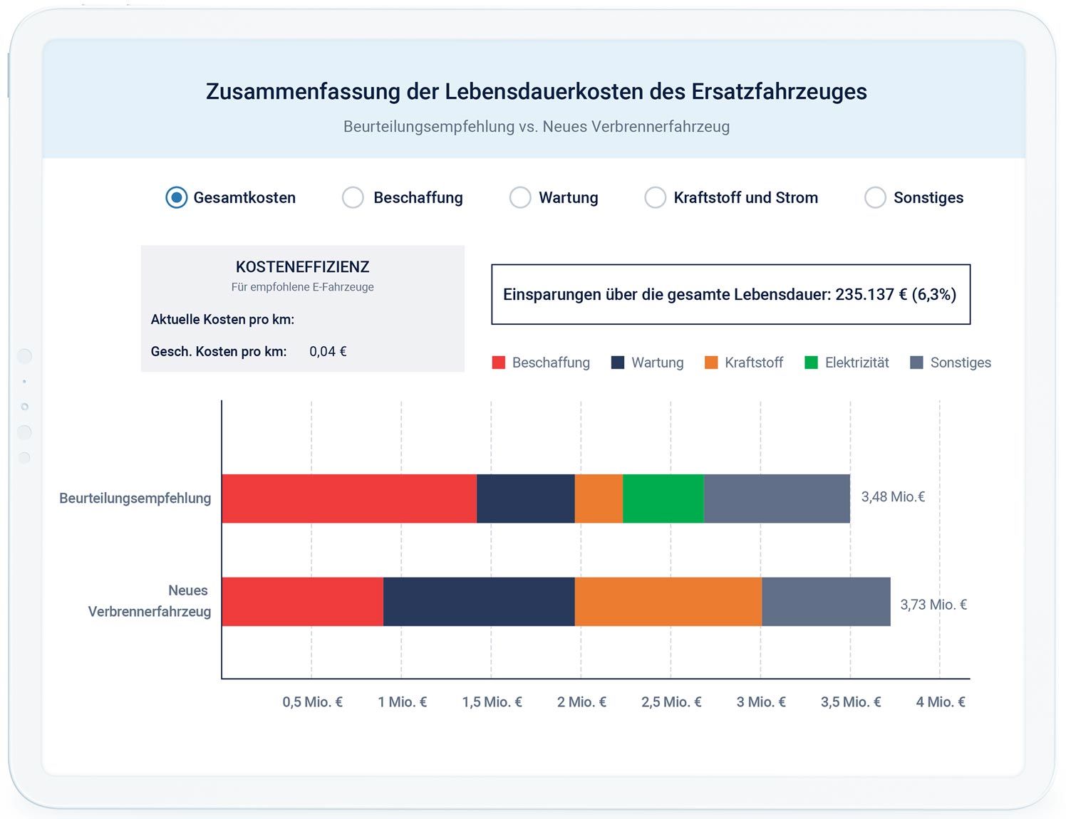 Zunächst werden die Fahrtenprofile der jeweiligen Fahrzeuge analysiert, also die gefahrenen Kilometer / Strecken pro Arbeitstag. Anhand dieser Daten wird die EVSA Berechnung gestartet, die auf praxisorientierten Daten beruht. So bekommen sie Empfehlungen welcher Verbrenner sinnvoll durch ein E-Fahrzeug ersetzt werden kann und den Anforderungen gewachsen ist.